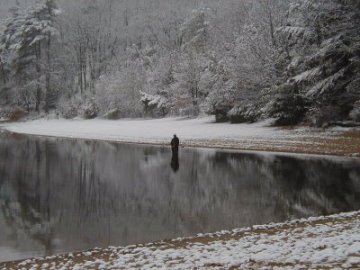 Fischer am Waldensee im Winter